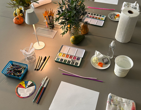 socializing over food, drinks & art supplies